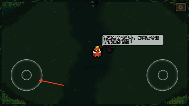 5、左侧的轮盘可以用来控制走位,英雄会自动进行战斗,你只需专注于站位即可。