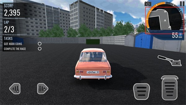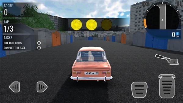 7、玩家需要驾驶俄罗斯汽车进行圈速挑战,屏幕左侧为方向控制,右侧则是油门与刹车;