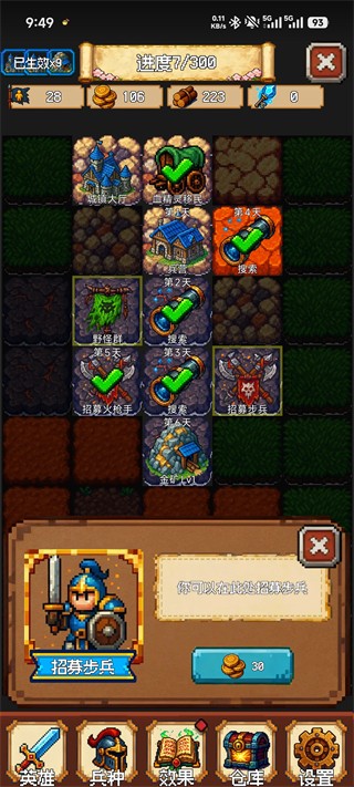 通过兵营不断招募步兵、圣骑士、火枪手等单位,合理搭配阵容以提高战斗胜率。