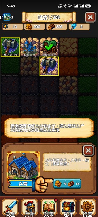 11:在地探索界面,选择“铁匠铺Lv1”建筑,消耗70金币解锁,解锁后可研发初级科技,助力资源产出与兵种战力提升,推动游戏进度。