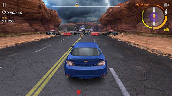 6、路障:由数辆警车并排组成,用于拦截赛车手,但通常会留有足够一辆车通过的缺口,玩家只需瞄准缺口冲过即可。