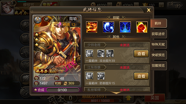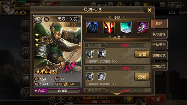 2、对抽到的武将进行升级,提升技能等级等多种养成方式。