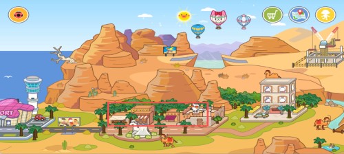 1、切换至沙漠场景后,点击红框标记的区域,即可进入该区域的建筑场景进行互动体验。