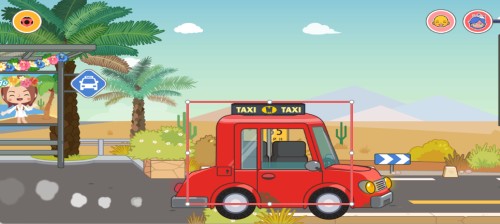 3、在机场外的道路界面,点击红框标注的出租车,将触发与该车辆相关的互动操作。