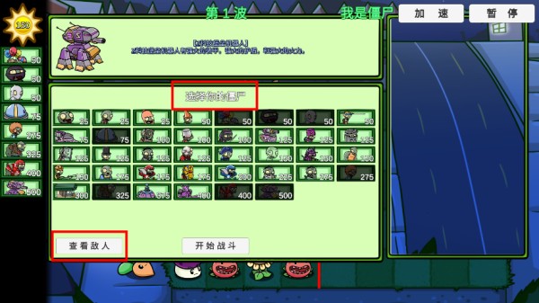 3、与常规模式相同,玩家可根据敌方的布阵选择合适的僵尸出场;